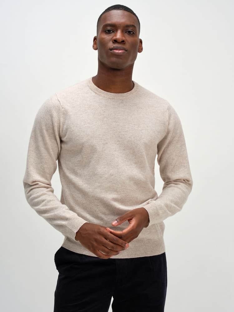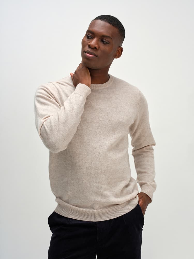 Dette er den perfekte basistrøje, og den passer ind i alle garderober. Du får en glatstrikket klassiker med en rund hals samt en lille ribkant ved halsen, manchetter og den nederste søm. Trøjen er et must-have i herregarderober. Normal i størrelsen og pasformen.