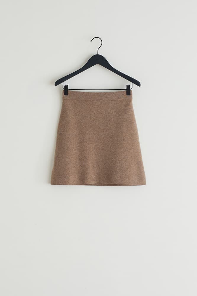 Nederdel med en såkaldt full needle-strikning. Kortere A-formet model med elastik i taljen.