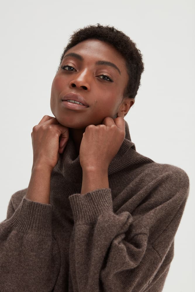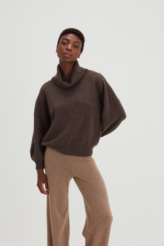 Fine-knitted turtleneck sweater with balloon sleeves and puff details on the shoulders. High cuffs on the arm openings. Oversized collar for a cosy feeling.