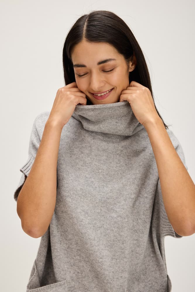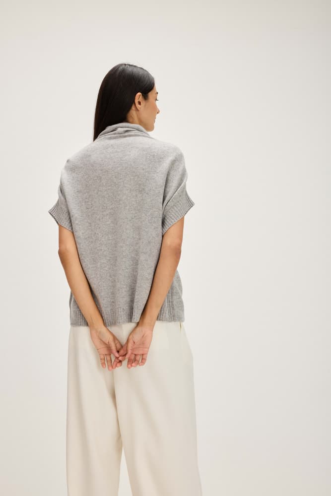 • Flat knitted vest with turtleneck and two pockets. Slouched shoulders and ribbing along the edge. Oversize fit to work great over for example a white crisp shirt.