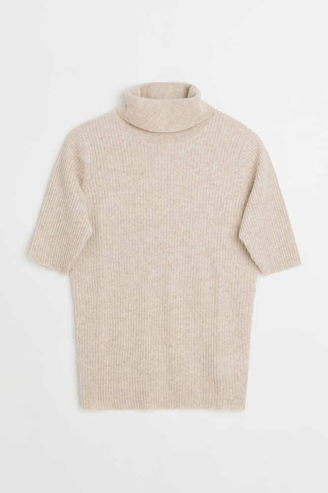 Topp med polokrage og korte ermer. Ribbestrikket modell med figurnær passform.