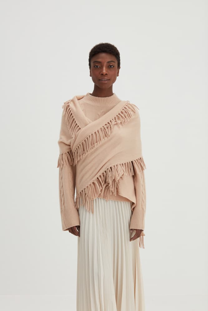 • Our classic, but with fringes along the sides for an extra edge. Rectangular, plain knitted classic scarf. Big, warm and made of the softest cashmere.