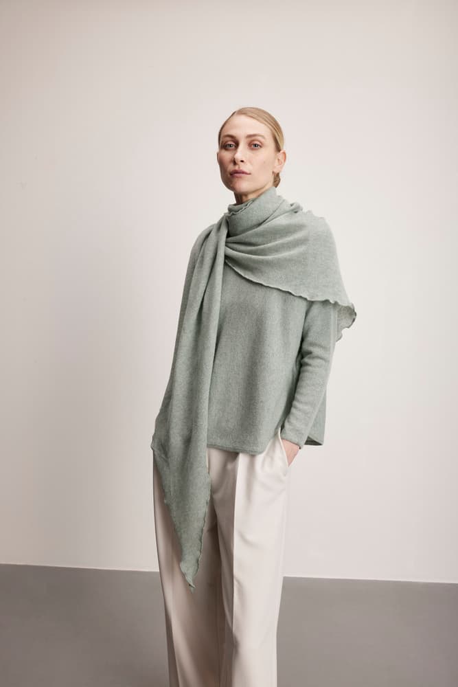 Dette triangelformede skjerfet er et glattstrikket, tynnere skjerf med en detaljert, bølgete kant. Det perfekte tilbehøret til høst og vinter.