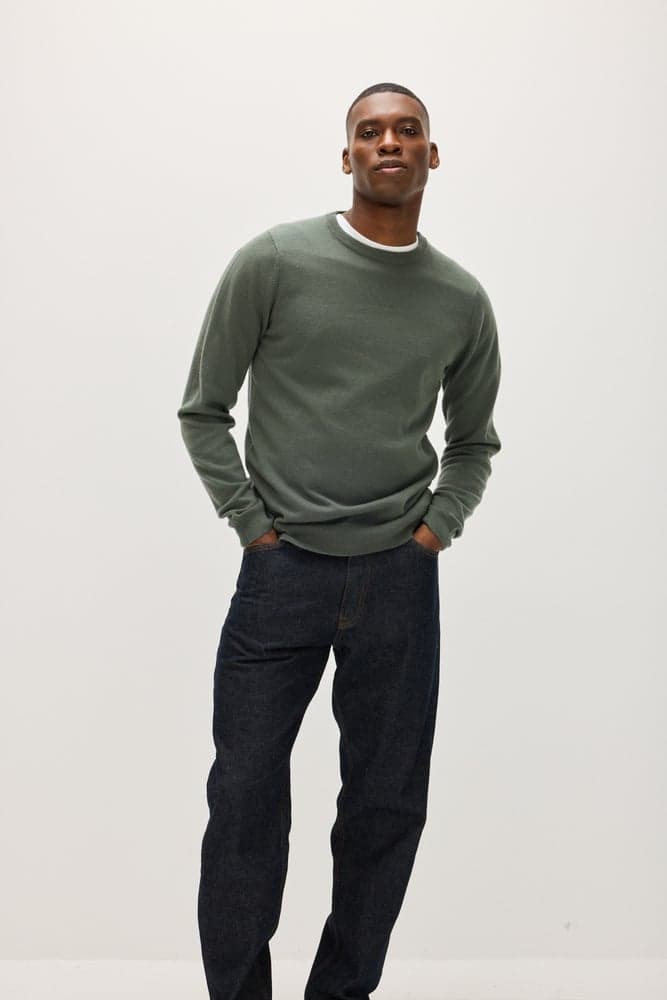This is the perfect o-neck for any wardrobe. A plain knitted classic with a rounded neckline and ribbed hems around the neck, arms, and lower edges. This plain men's o-neck is a must in every man's wardrobe. True to size and fit.