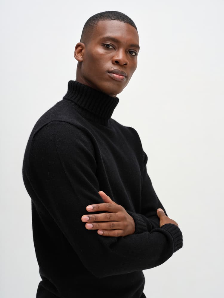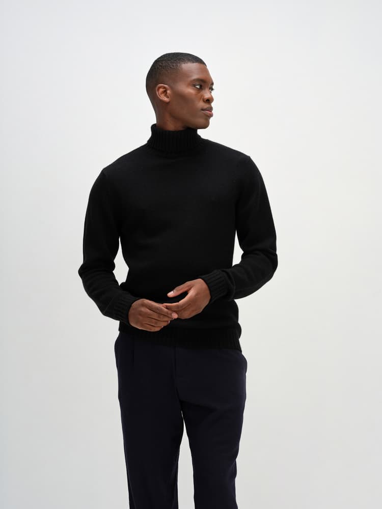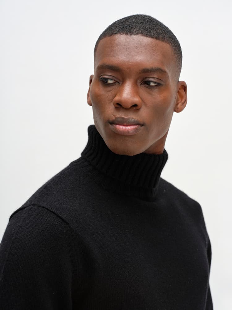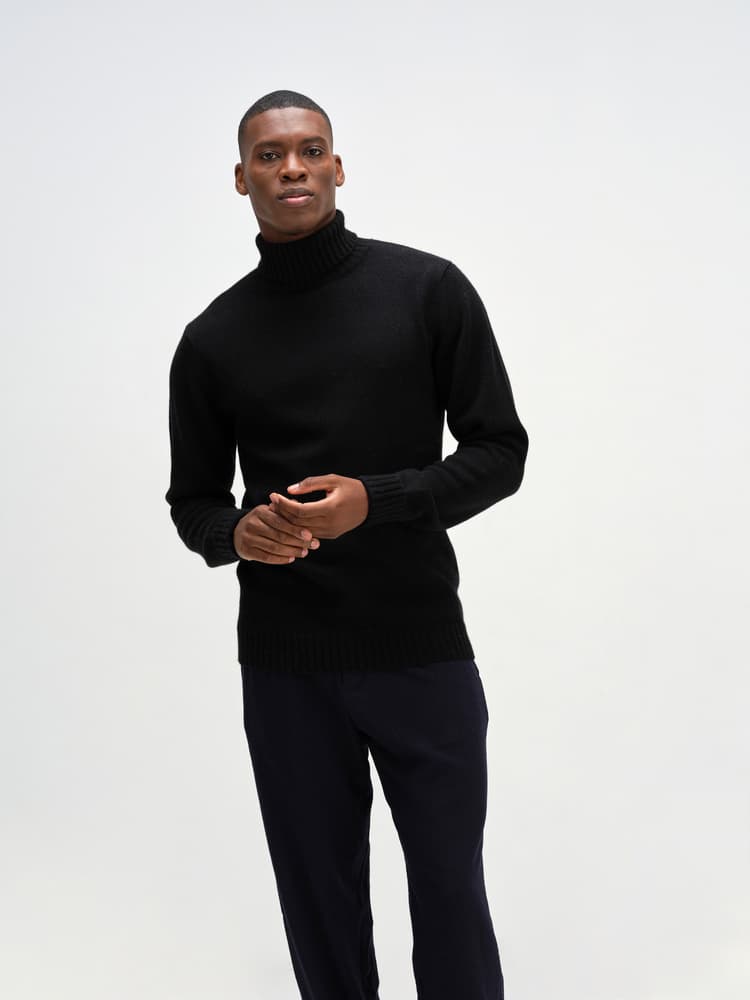 • A durable, tight-knit roll neck sweater. With a distinctive rib at the neckline, bottom hem and cuffs. Double thick at both the collar and cuffs. True to size and fit.