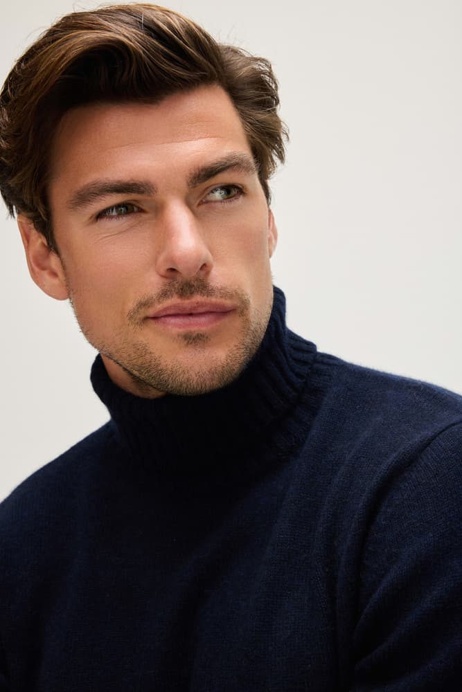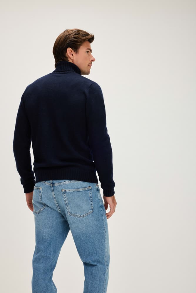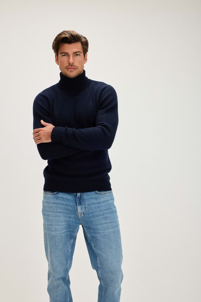 A durable, tight-knit roll neck sweater. With a distinctive rib at the neckline, bottom hem and cuffs. Double thick at both the collar and cuffs. True to size and fit.