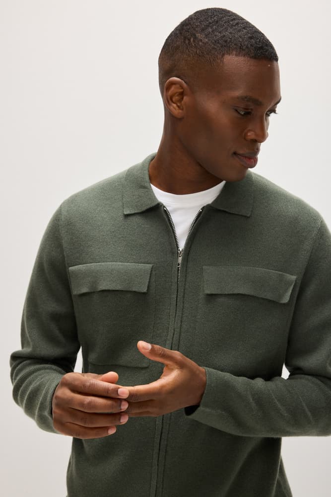 Knitted cardigan with collar and zipped front. The cardigan have front pockets, ribbed on both the cuffs and hem. A cardigan for all occasions - a real wardrobe classic.