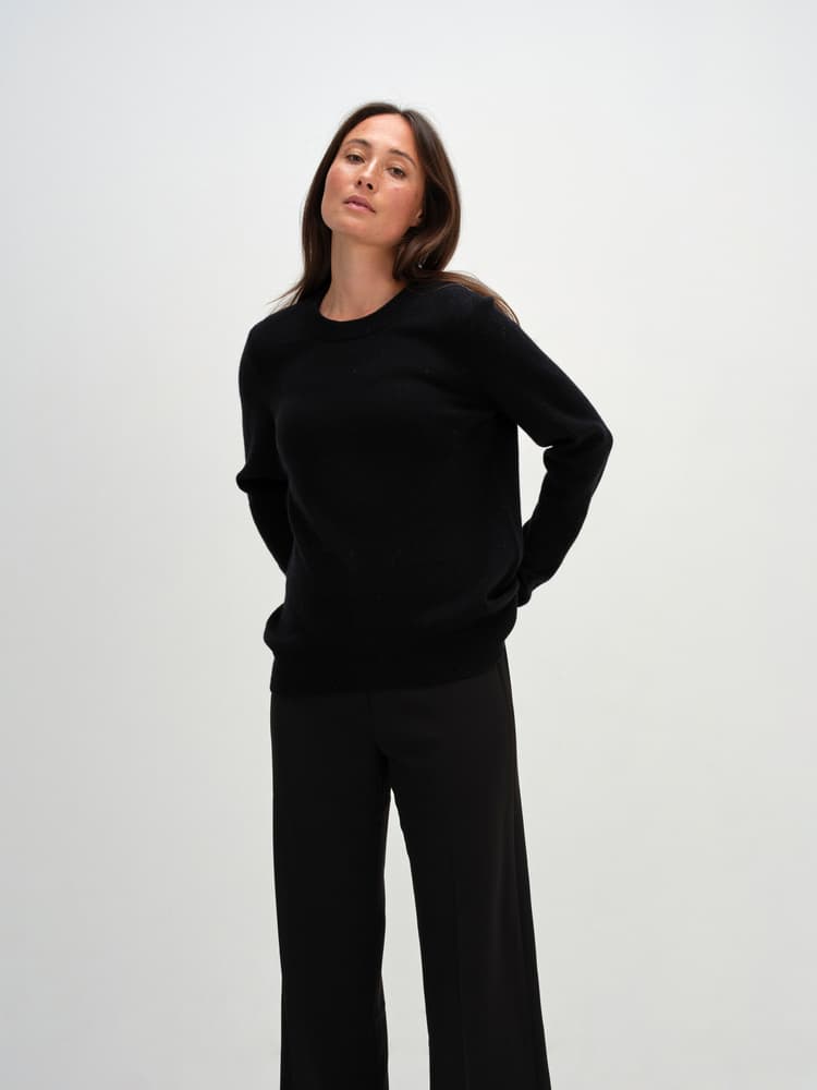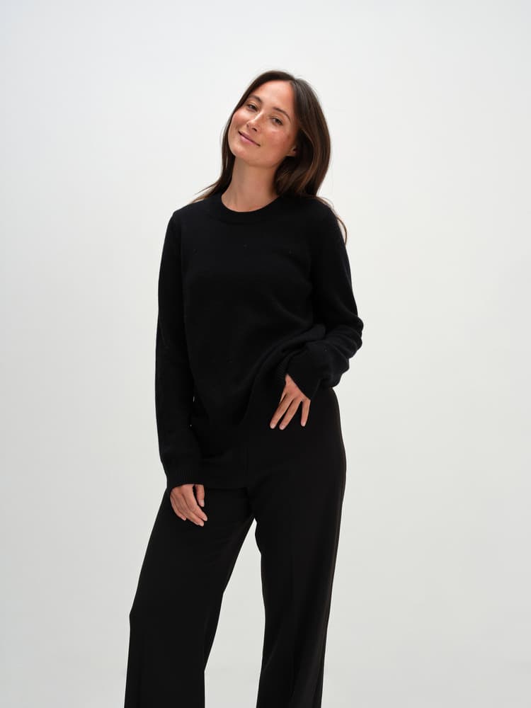 • A tight-knit straight o-neck sweater with a marked rib along the collar. This sweater is longer in the back than in the front, which creates a beautiful silhouette and a relaxed look. Straight cut, so can feel oversized.