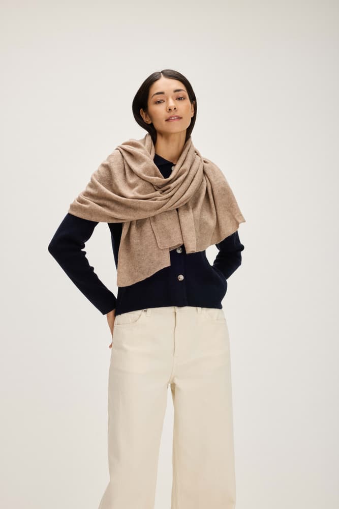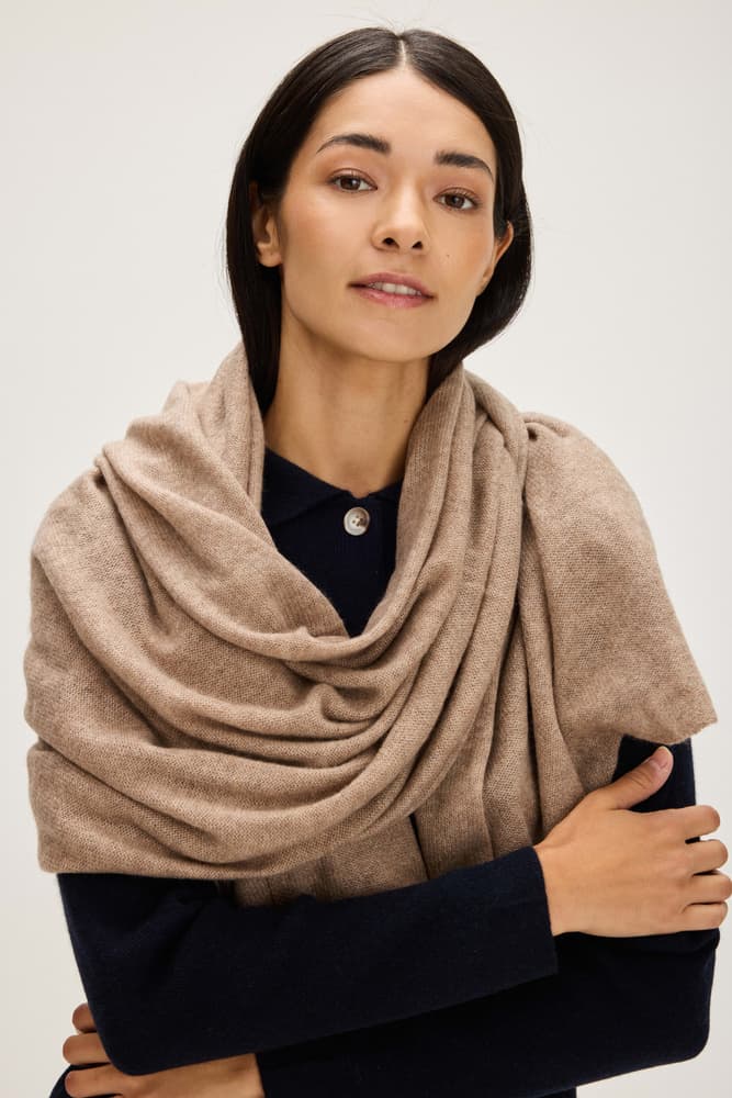 Rektangulär slätstickad halsduk. Halsduken är generös i storleken, varm och i den mjukaste kashmir.