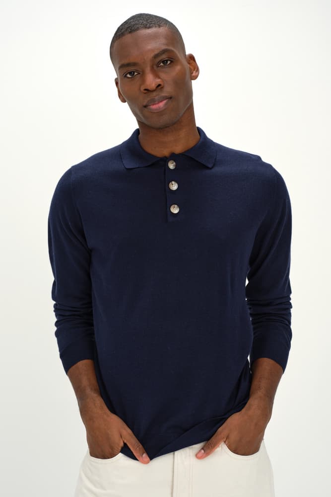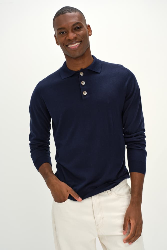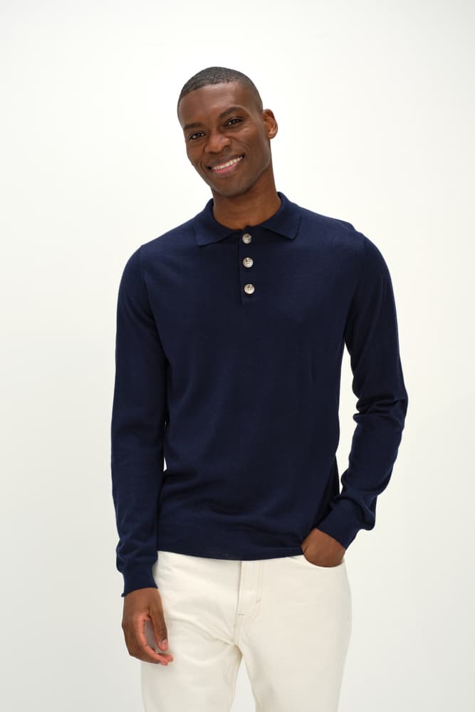 Vår Man Collar är den ultimata tröjan för dig som efterfrågar en stilig och samtidigt avslappnad look. En långärmad tröja, som med sin krage och sina knappar, ger möjlighet till oändliga användningsområde. Tröjan är slätstickad och har en normal passform.