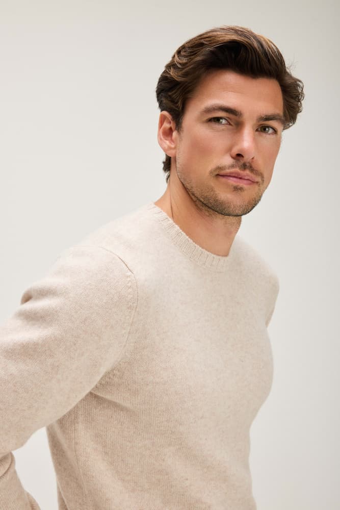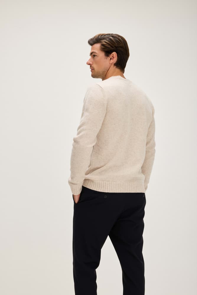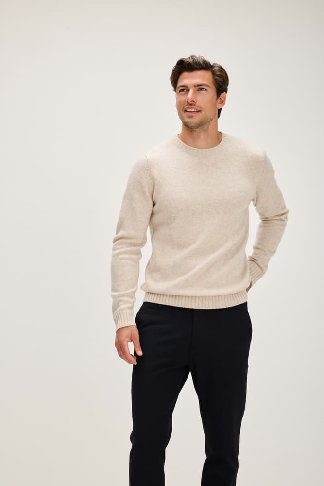 En lite kraftigare tröja, men rund halsringning. Snygg detalj med en markant rib i halsringning samt nedre kant och ärmslut. Normal i storlek och passform.