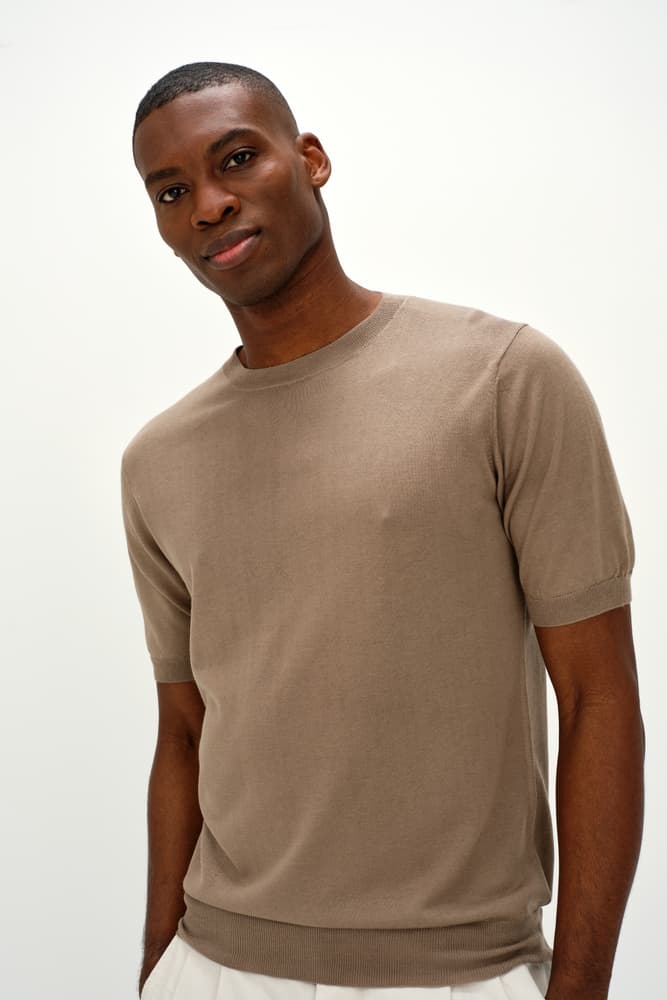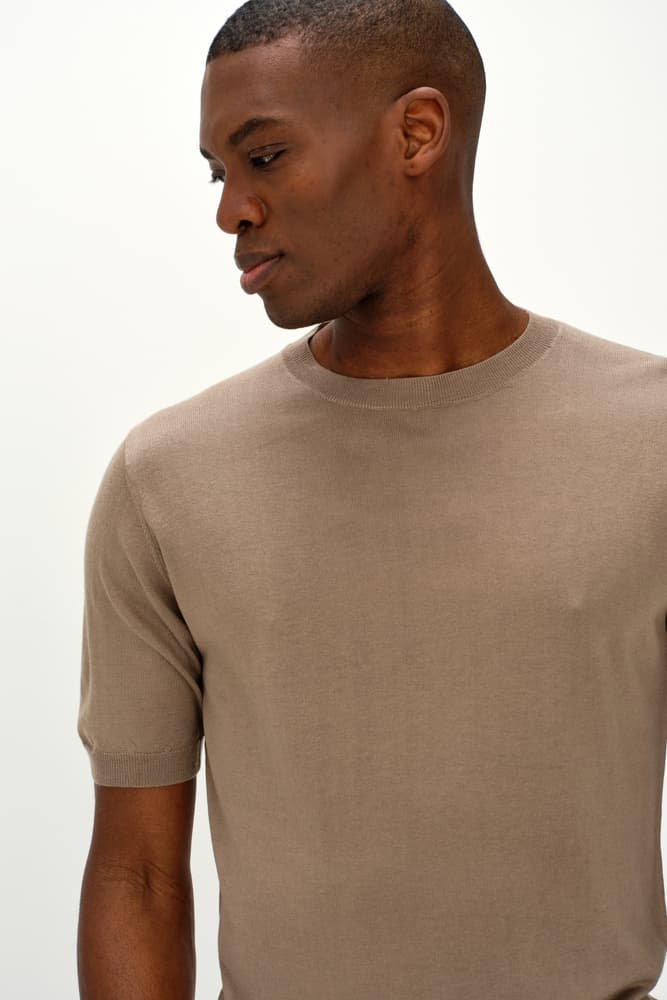 Den perfekta kortärmade t-shirten med rund krage. Kommer i en enkel, klassisk slim fit och en True to size och perfekt för sommaren i en kashmir/silk mix. Enkelstickad.