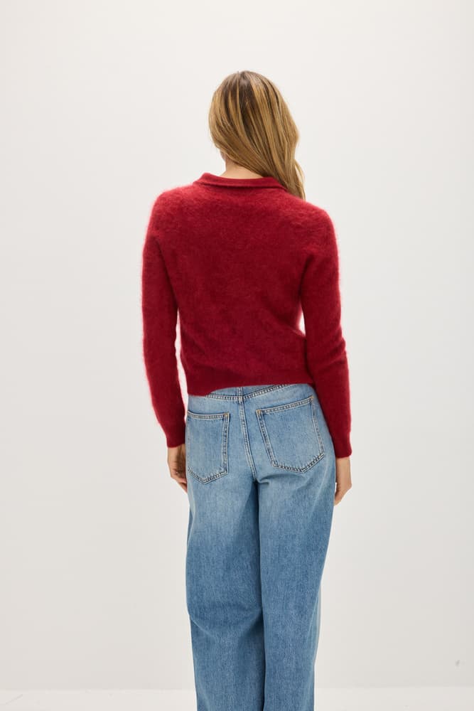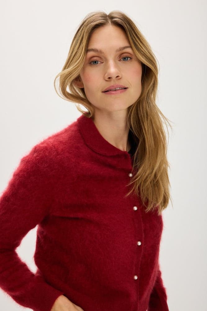 Brushed cashmere cardigan with a collar, pearl buttons and a boxy cut.