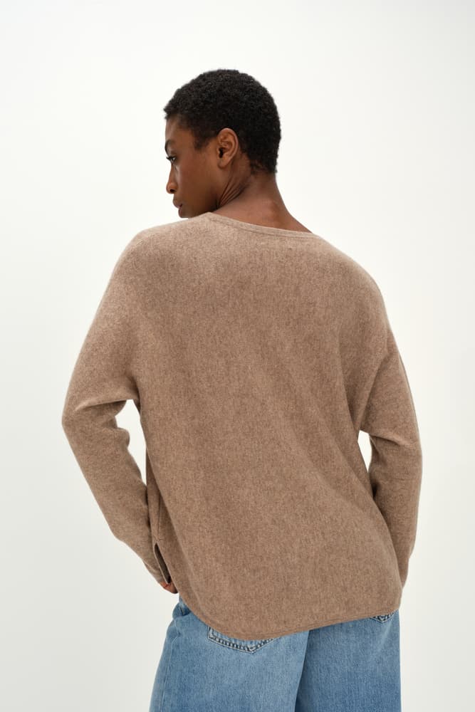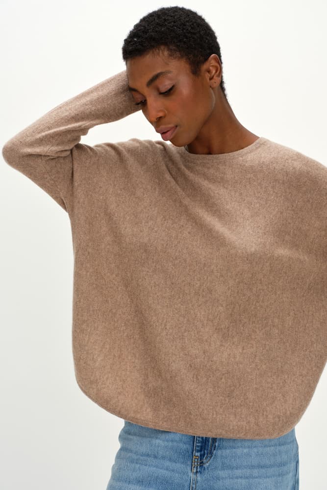 Vår bästsäljare alla säsonger! Med en rundad halsringning och en oversized passform kan den bäras av alla kvinnor oberoende av storlek och kroppsform. Vi älskar den! Den är slätstickad med slits på sidorna och nedre kant är rundad både fram och bak. Tillsammans med ett par jeans får du en snygg och enkel vardagslook. Matchar du istället med en kjol kan du gå raka vägen på fest. Superfin vid alla tillfällen.