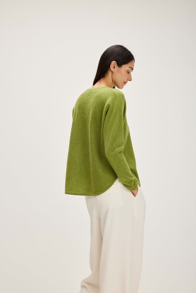 Vår bästsäljare alla säsonger! Med en rundad halsringning och en oversized passform kan den bäras av alla kvinnor oberoende av storlek och kroppsform. Vi älskar den! Den är slätstickad med slits på sidorna och nedre kant är rundad både fram och bak. Tillsammans med ett par jeans får du en snygg och enkel vardagslook. Matchar du istället med en kjol kan du gå raka vägen på fest. Superfin vid alla tillfällen.