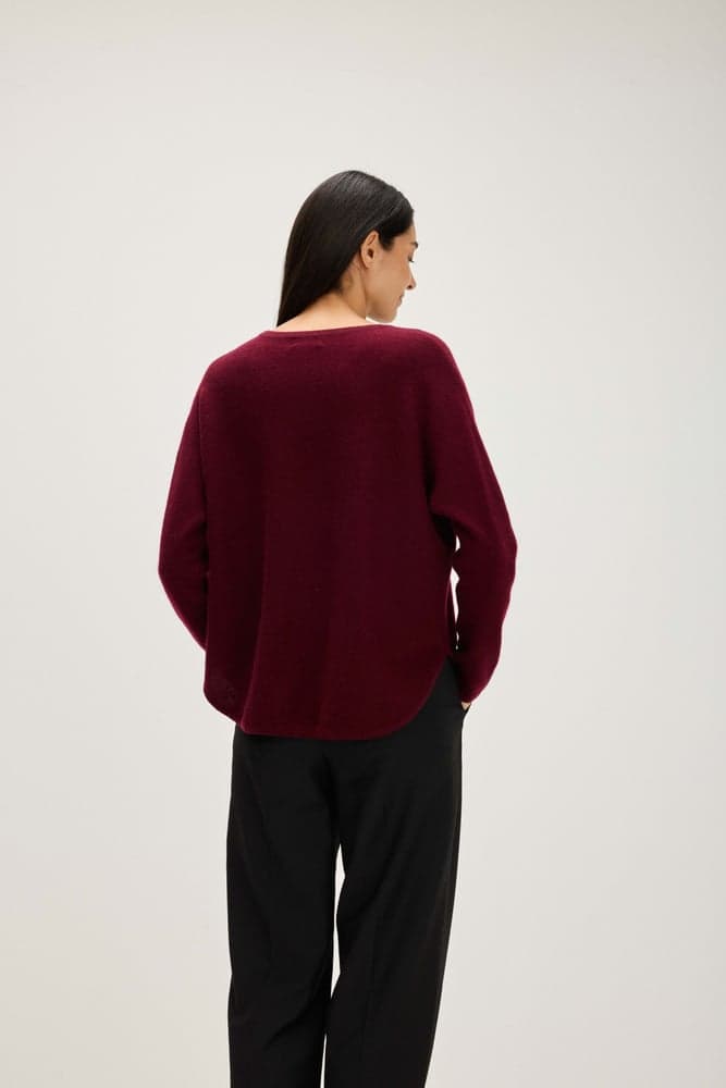 Vår bästsäljare alla säsonger! Med en rundad halsringning och en oversized passform kan den bäras av alla kvinnor oberoende av storlek och kroppsform. Vi älskar den! Den är slätstickad med slits på sidorna och nedre kant är rundad både fram och bak. Tillsammans med ett par jeans får du en snygg och enkel vardagslook. Matchar du istället med en kjol kan du gå raka vägen på fest. Superfin vid alla tillfällen.Läs mer