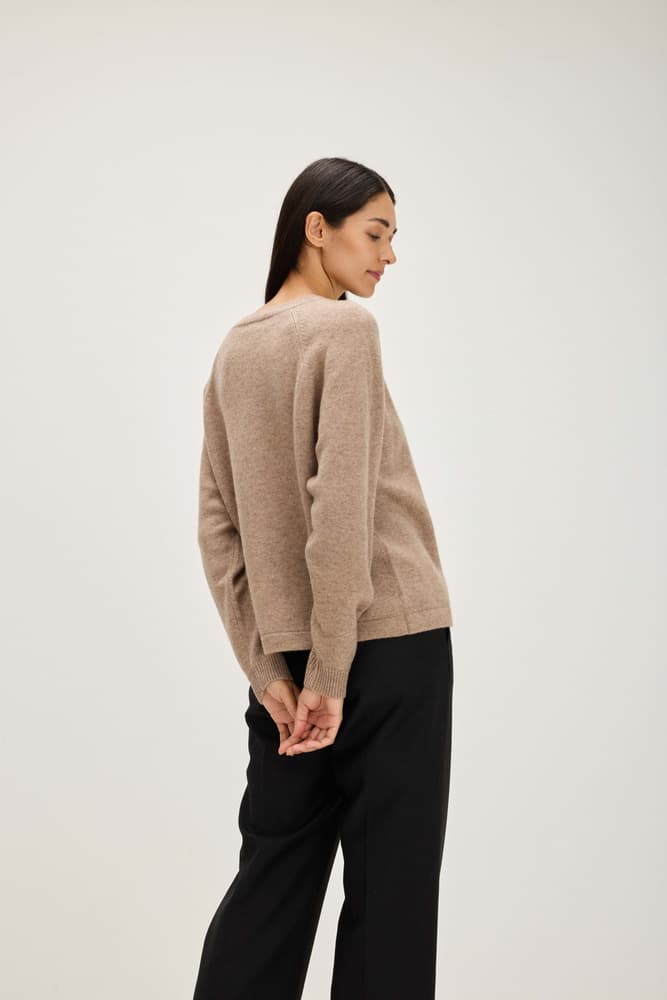 An oversize sweater in a plain knit with a relaxed feel. Elastic knitting at the cuffs and bottom and elastic knitted round collar. Dropped shoulders. Long fit and rounded back.