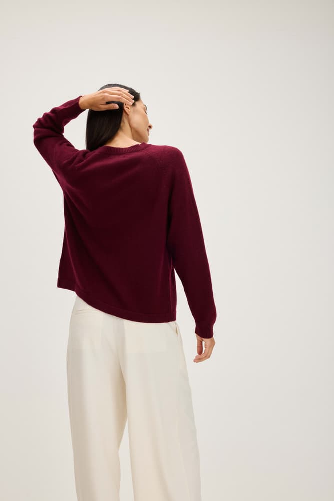• An oversize sweater in a plain knit with a relaxed feel. Elastic knitting at the cuffs and bottom and elastic knitted round collar. Dropped shoulders. Long fit and rounded back.