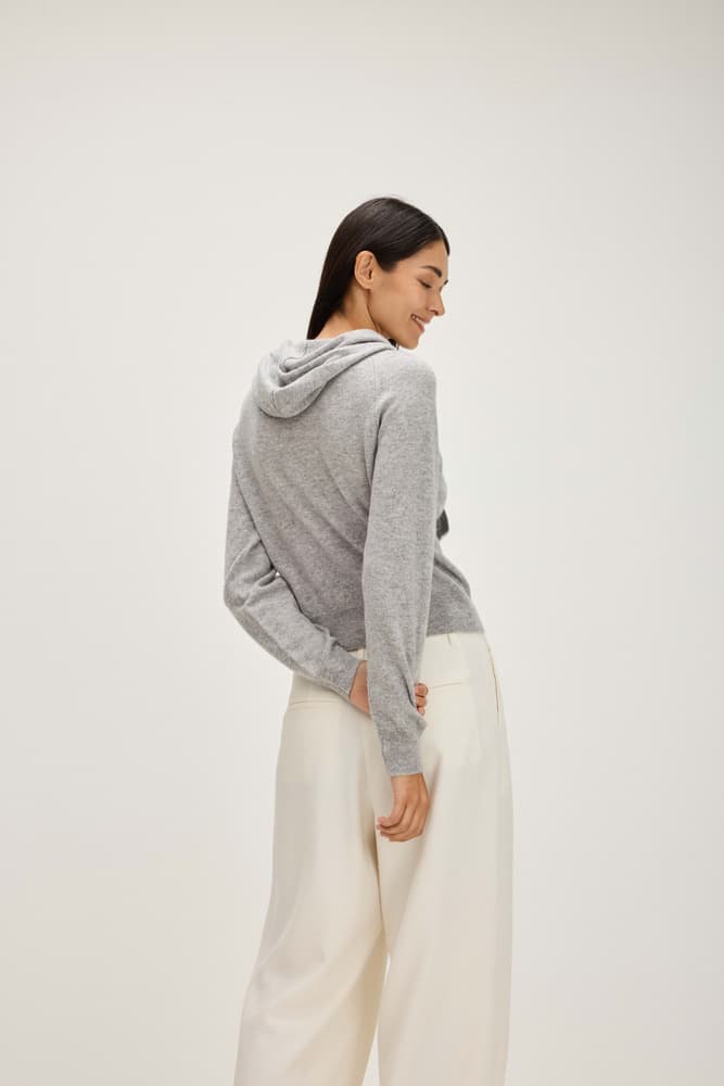 A shorter version of our popular hooded sweatshirt with zip and front pockets. This sweater is flat knitted and made in a waist-short design with a normal fit. Pair this hoodie with a pair of our trousers and create a cosy set you will never want to take off!