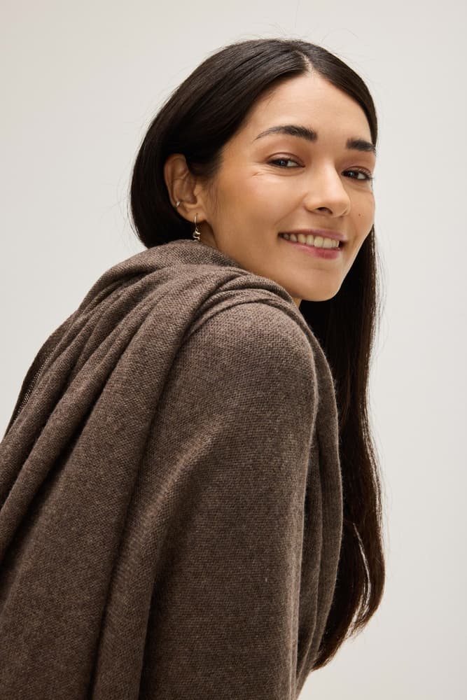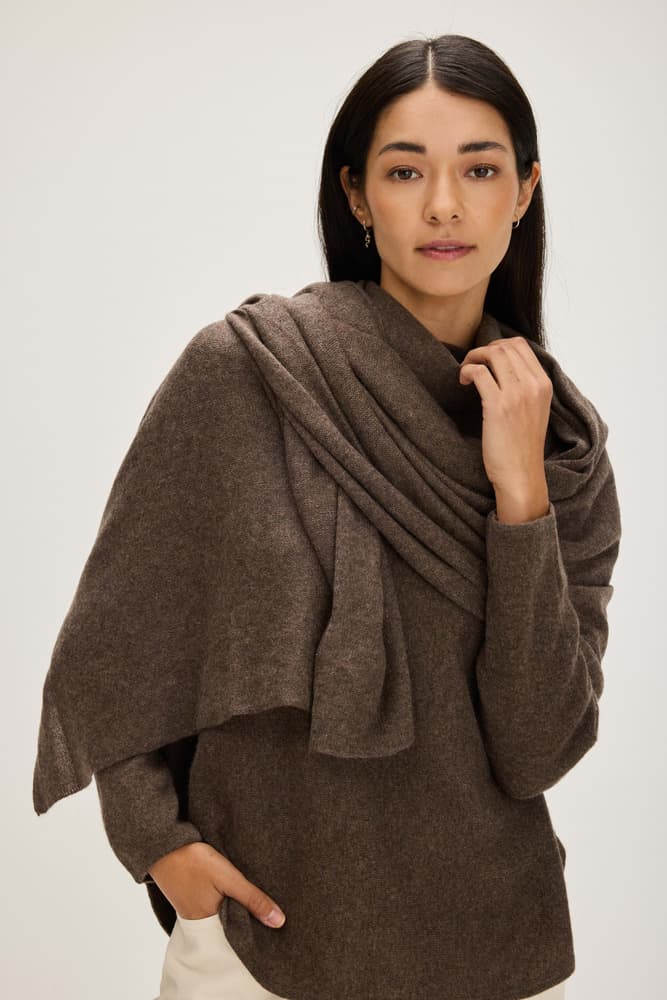 Rektangulär slätstickad halsduk. Halsduken är generös i storleken, varm och i den mjukaste kashmir.
