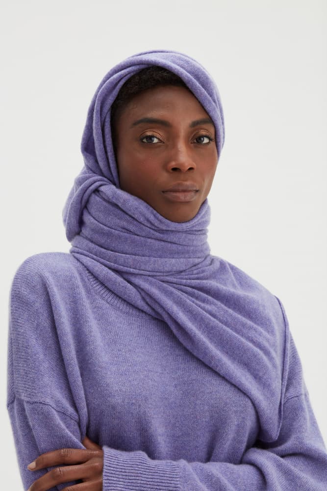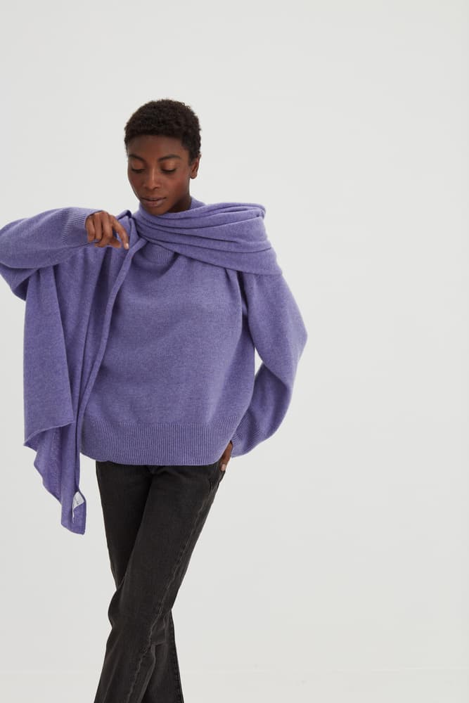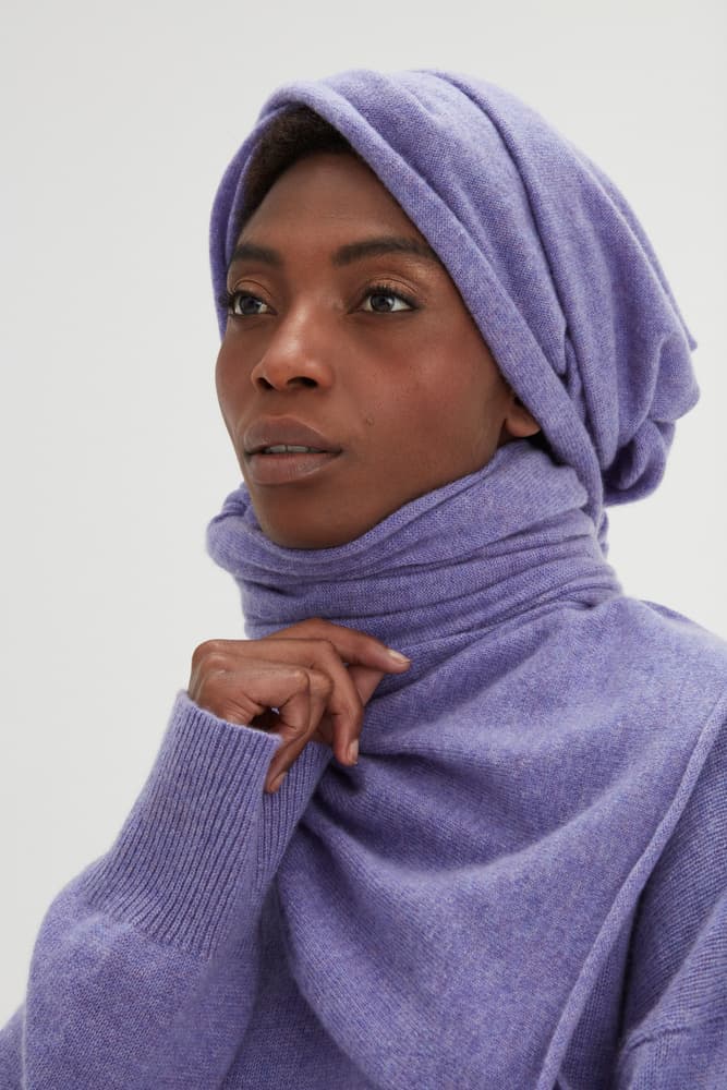 • Rektangulär slätstickad halsduk. Halsduken är generös i storleken, varm och i den mjukaste kashmir.