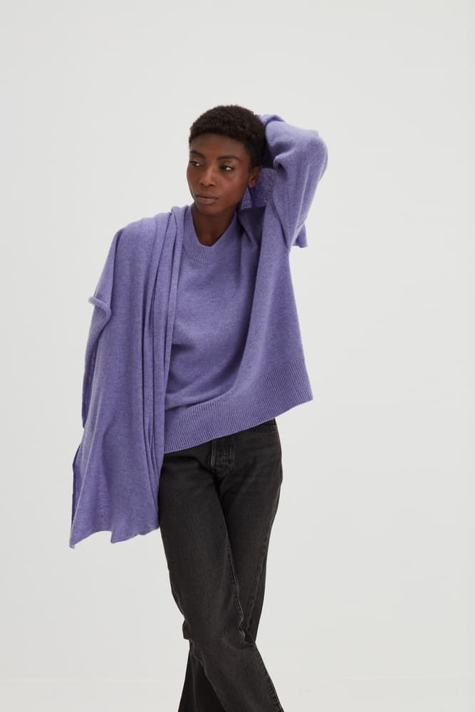 Rektangulär slätstickad halsduk. Halsduken är generös i storleken, varm och i den mjukaste kashmir.Läs mer