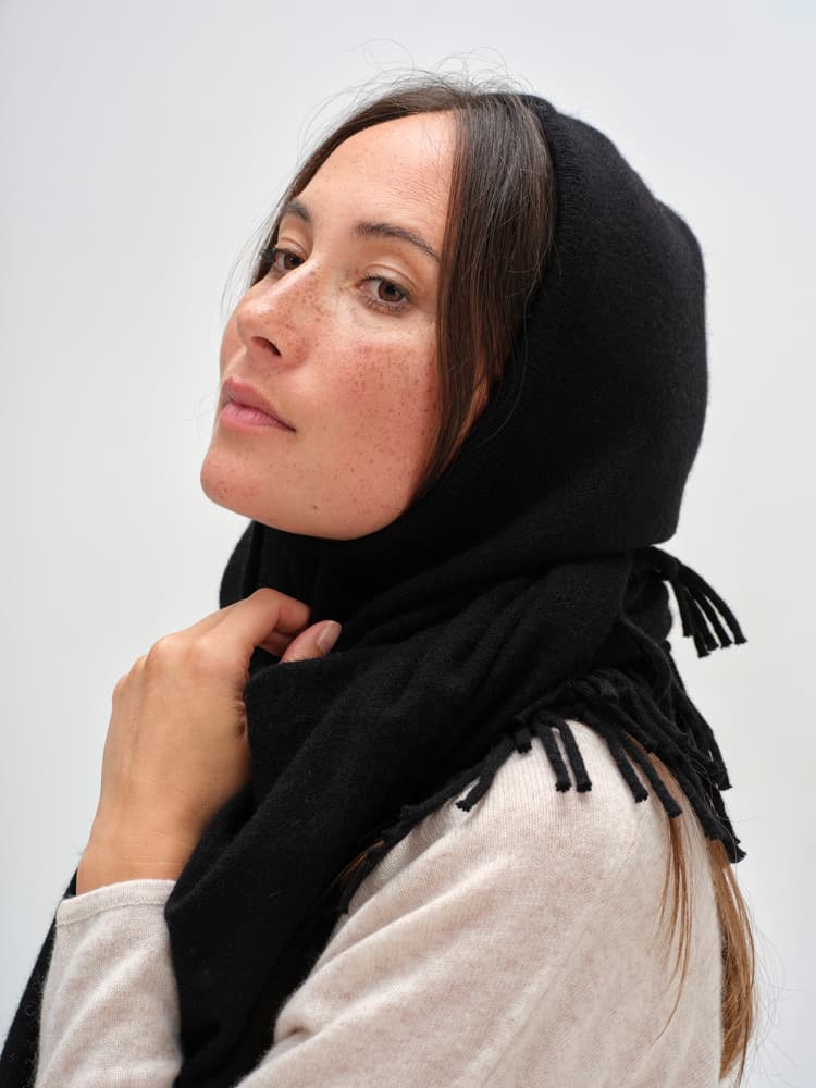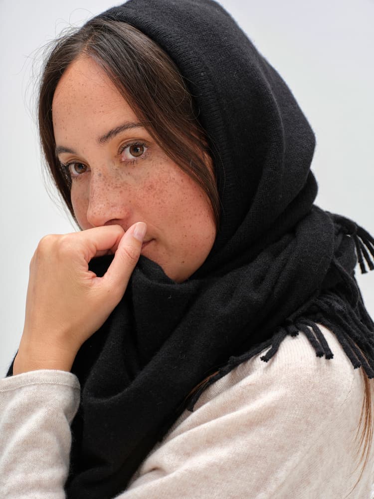 Vår klassiker, men med fransar längs sidorna för en extra effekt. Rektangulär, slätstickad klassisk halsduk. Stor, varm och tillverkad i mjukaste kashmir.